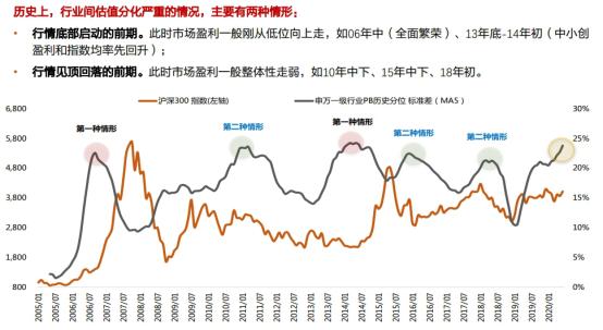 另一方面,历史回溯表明,即便出现全面牛市的估值收敛:第一,高位估值(估值分位>80%)持续的时间可以很长,半年甚至一年以上。当前PB分位在80%以上的行业仅有食品饮料(目前维持2个月)。第二,低估值板块补涨的过程中,高估值行业通常并未跑输低估值行业。