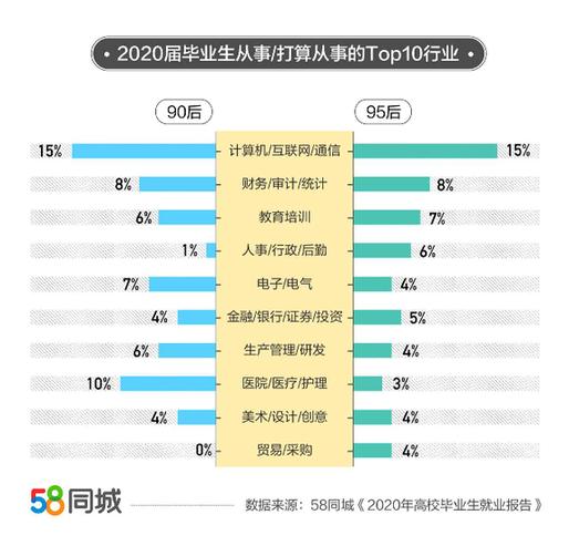 近日,58同城发布《2020年高校毕业生就业报告》报告。报告显示,95后毕业生占比83%,超40%的毕业生已找到工作;约90%毕业生选择的职业与专业对口,IT行业最受欢迎;企业支付毕业生平均月资7839元,医院/医疗/护理行业月薪水平第一,达到11000元;一线城市毕业生更多进入民营私企,新一线城市毕业生倾向到国有企业工作。