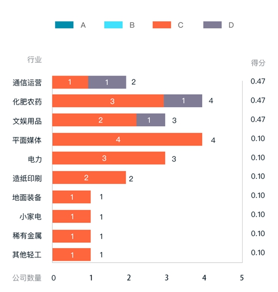 测评较差的行业主要有其他轻工、小家电、稀有金属等,主要原因是所属这几个行业的创业板公司数量比较少,在这少量的公司里面测评结果基本是C、D。