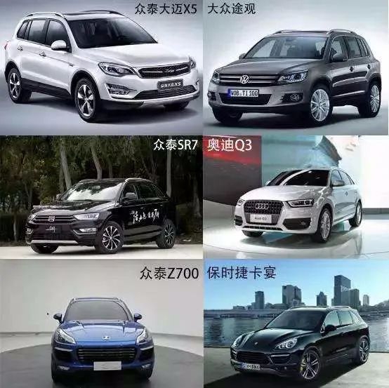 众泰SR7模仿奥迪Q3、众泰SR9模仿保时捷Macan、君马MEET3模仿奔驰GLC等均贡献了不错的销量业绩;