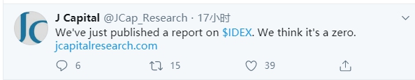 文中称,IDEX最近发布了五篇新闻稿,五个合作机构中,四家工作人员否认与IDEX存在任何交易。而近期其股价的上涨,J Capital Research认为,不过是一次时机恰到好处的拉升。