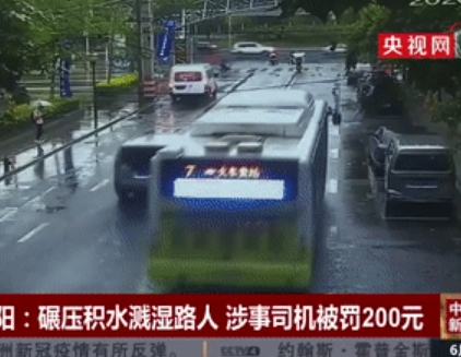 这事儿违法!司机开车碾压积水溅湿路人,处理结果来了