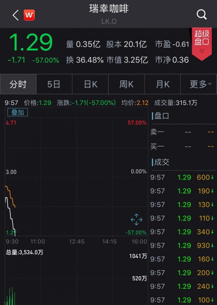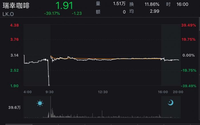 消息公布后,瑞幸咖啡股价盘前跌超30%。