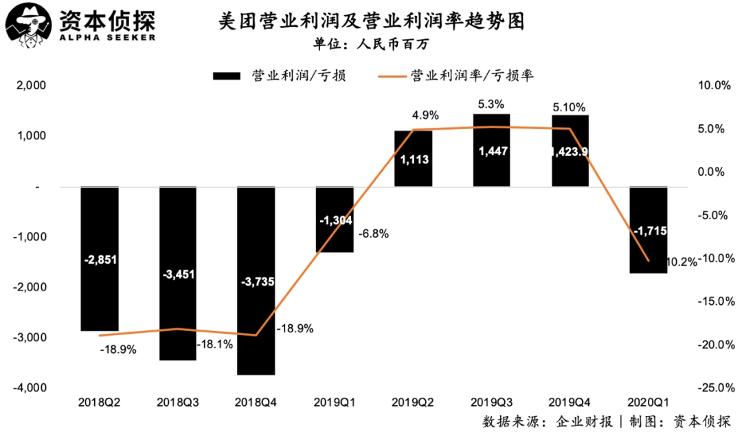 以美团为例,不考虑受疫情影响的2020年第一季度,在2019年美团已连续三个季度录得正值的营业利润,但营业利润率也仅维持在5%左右——营收规模庞大,费用同样高企。