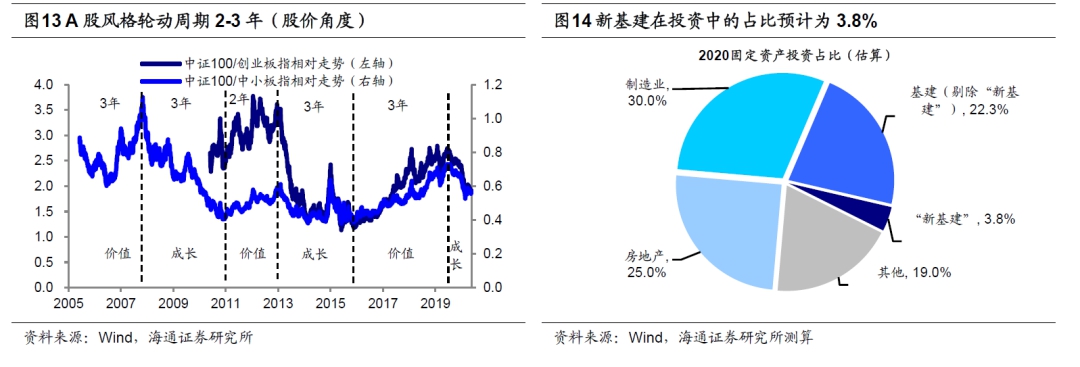 Q3聚焦科技+券商+汽车家电,Q4关注低估行业。过去3个月由于疫情全球扩散,投资者担忧基本面,市场主线是追逐确定性,医药、食品饮料领涨,我们预计下半年国内基本面明显改善,回到疫情前水平,市场将从前期的交易确定性转向交易成长性,基本面修复中风险偏好也将上升,三季度重点关注科技+券商,以及消费中的汽车和家电。科技方面关注新基建,新基建包括7个领域,主要聚焦科技,在大方向上与我国产业结构向信息化调整的方向一致。我们预计新基建2020年投资近3万亿元,7个领域同比增长均为两位数以上甚至过百,详见《策略对话行业:新基建的规模和机遇-20200518》。从中期产业链逻辑看,5G代表的新一轮科技周期才刚刚开始。类似12-15年的3G/4G,这次基本面的回升预计也要持续2年,5G中后期带动内容软件再到应用场景,即19年电子到20年计算机、传媒、新能源车产业。其中重点关注今年业绩弹性较大的新能源车和计算机。新能源车今年重启补贴,因此今年业绩增速或将明显提升,20Q1新能源车板块净利润同比增速为-90%,我们预计2020年全年增速为10%;计算机方面主要受益于5G后产业链,20Q1净利润同比增速为-111%,我们预计2020年全年增速为10%。除了科技,券商也需重视。我们预计Q3市场将有望在基本面回升后迎来牛市3浪上涨,市场成交额放大将助推券商盈利改善,如果没有疫情19年12月即是牛市3浪上涨起点,当时券商股表现较强。20Q1券商归母净利润同比增速为-23%,我们预计2020年全年增速为10%。此外,中期逻辑上金融供给侧改革是当前改革的重要方面之一,“两会”后金改政策望不断落地,改革方向是做大直接融资、股权融资,券商行业将有更多政策红利,尤其是分类监管下,头部公司面临更多发展机遇。除了科技和券商,扩大内需战略下受益的汽车和家电也值得关注。食品饮料和医药虽然长期具备投资价值,但是短期性价比不高,而今年汽车、家电两个行业涨幅低、估值低、配置低,相对更优。Q4关注低估板块,低估的行业修复需要催化剂,如银行地产、钢铁采掘。
