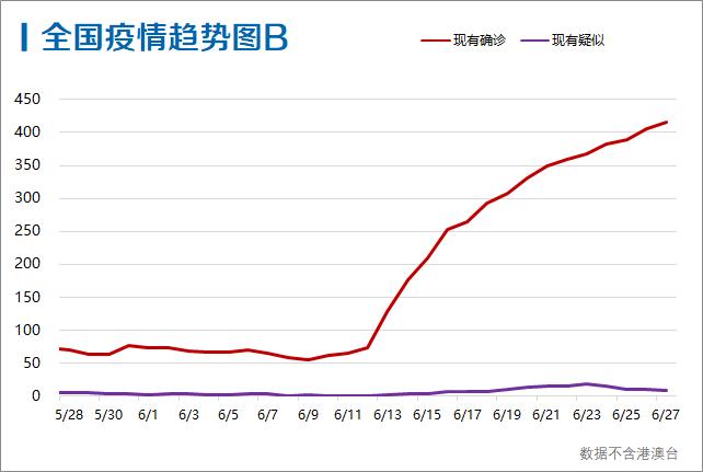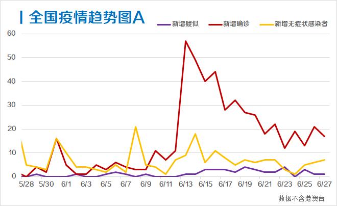 此外, 6月27日,香港新增1例确诊病例,累计确诊1197例,澳门、台湾地区零新增。包含港澳台,全国有29个省区市零新增,17个省区市清零。