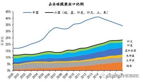 图表7 六个新兴经济体正在部分替代中国的服装出口份额