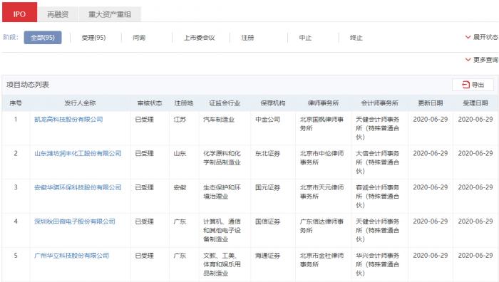 截至6月29日,创业板改革并试点注册制共五批获受理企业,申请IPO企业合计95家,申请再融资企业25家。