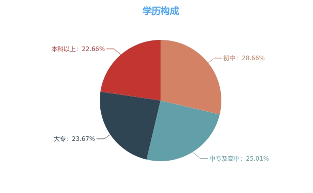 截至2019年12月31日,公司员工总人数为5869人,员工架构如下: