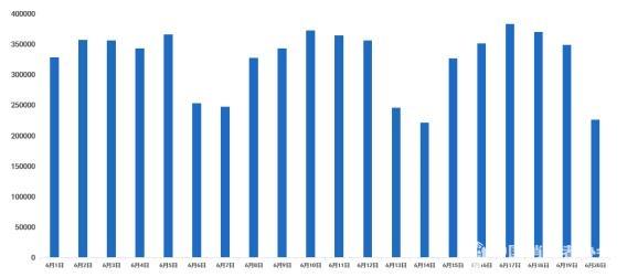 其中,消费维权舆情基本情况方面,在6月 1 日至 6 月 20 日共计 20 天监测期内,共收集“618”相关消费维权类信息 6488460 条,日均信息量 32 万余条。监测期间,消费维权信息虽呈现出曲线波动走势,但每日相关舆情数量较为均衡, 6 月 17 日最多,为 382657 条。