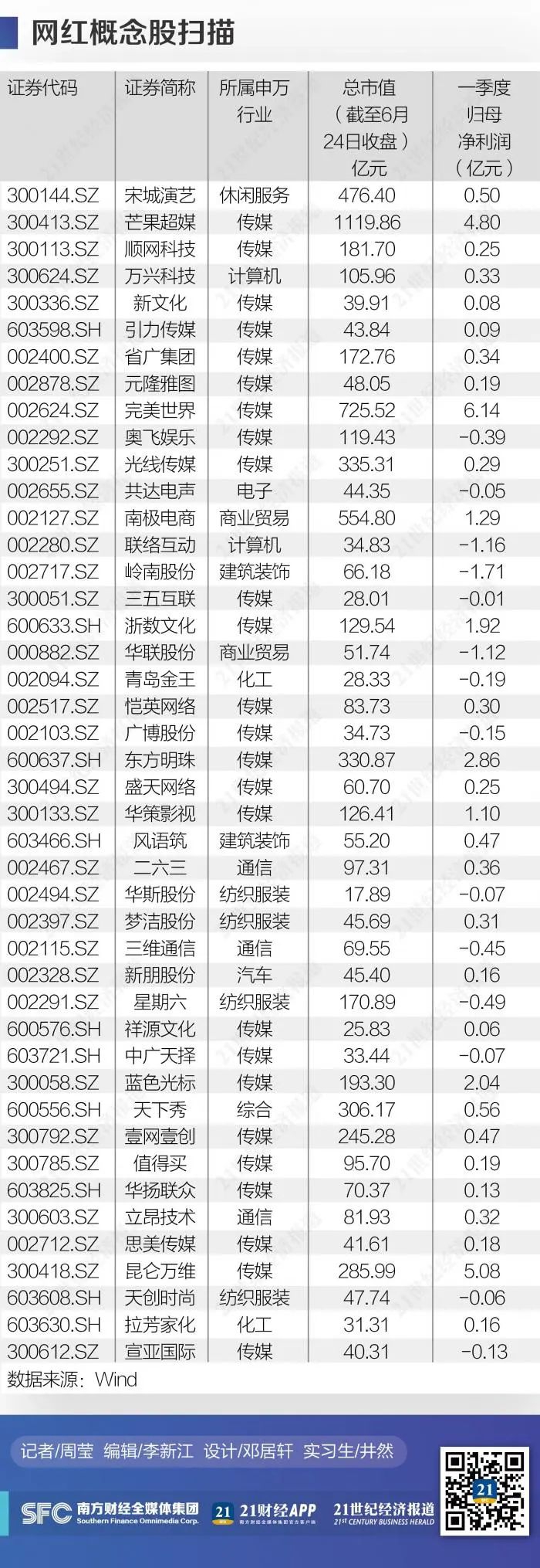 根据21世纪经济报道记者统计,截至目前,市场上的网红概念股已经多达40多家。