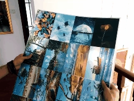 站在工作室中环顾四周,墙面上、桌台上、展架上,一张张薄片式的3D图像映入眼帘,从风景、文物到动漫、明星,内容无所不包,但无一例外都具有鲜艳的光泽感、逼真的画面感和深邃的空间感,令人眼前一亮。