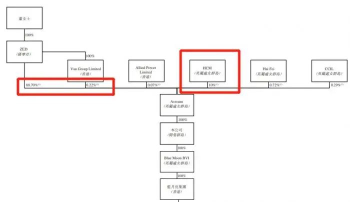 目前,罗秋平担任蓝月亮首席执行官,其妻子潘东则是公司董事会主席。股权结构显示,潘东通过境外投资控股公司ZED持有蓝月亮88.7%股权。此外,高瓴的HCM则持有10%股份。