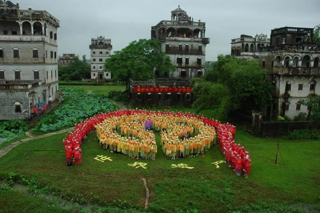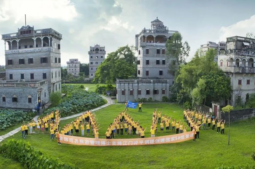 2009年6月28日,“开平碉楼和村落”申遗成功两周年,千名导游齐聚碉楼,在风雨中摆出世界遗产标志;2010年12月,随着电影《让子弹飞》的热播,“碉楼”迅速成为网络热词,开平旅游一下子“飞”了起来,影响直至今日。
