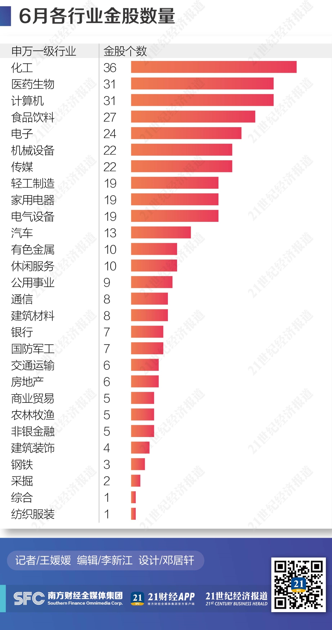 课题组研究发现,6月全部金股中,共有66只个股获2家及以上券商联合推荐。
