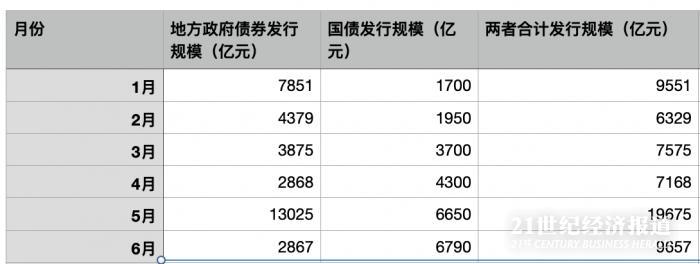 (上半年各月政府债券发行情况,其中6月国债发行中包括2900亿元特别国债)