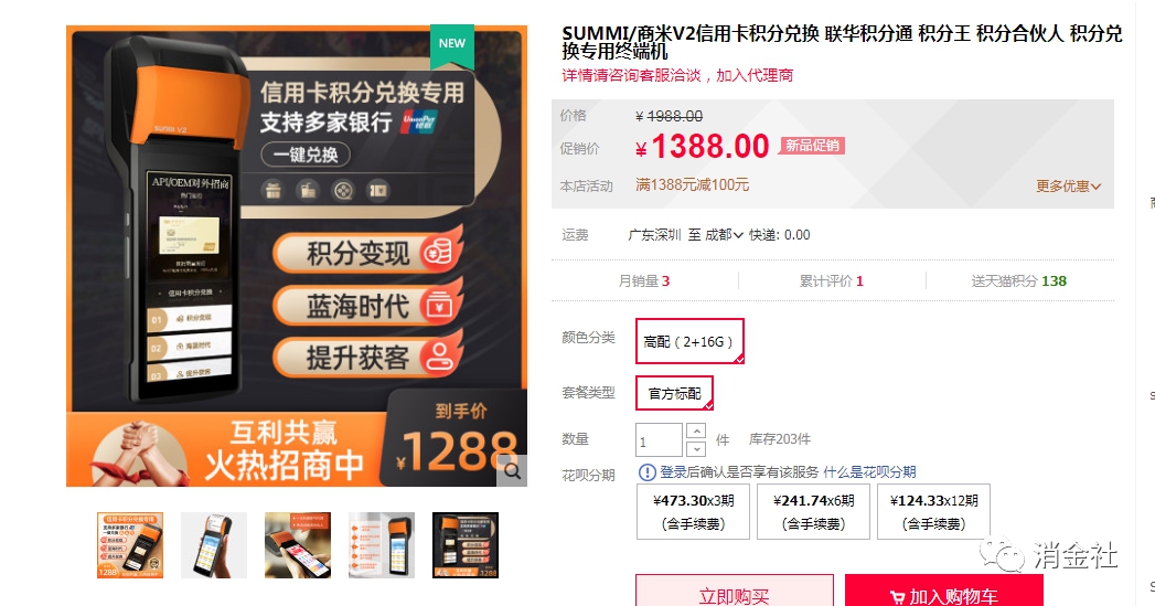 在淘宝上,还有出售积分兑换专用终端机的商家,宣称“一台机器即可代理,激活设备成合伙人”。