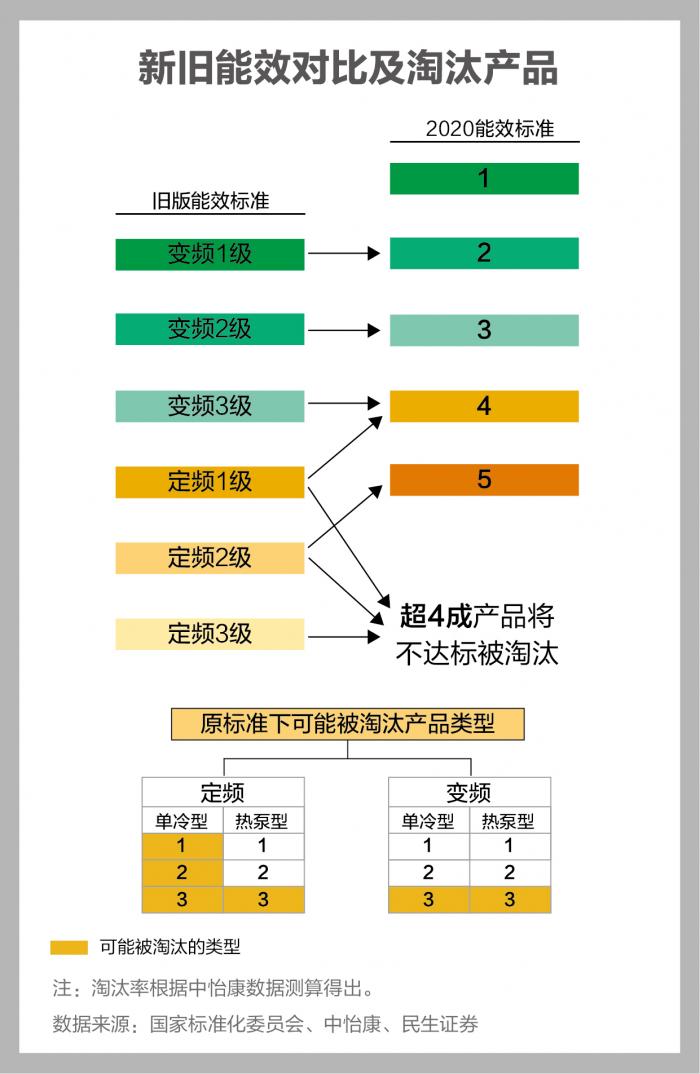中国标准化研究院研究员成建宏此前曾预测,此次新能效标准给空调产业带来的调整,将在2022年前后出现,届时会让中国空调市场的整体准入门槛提高30%左右,而目前定变频市场淘汰率在40%左右。