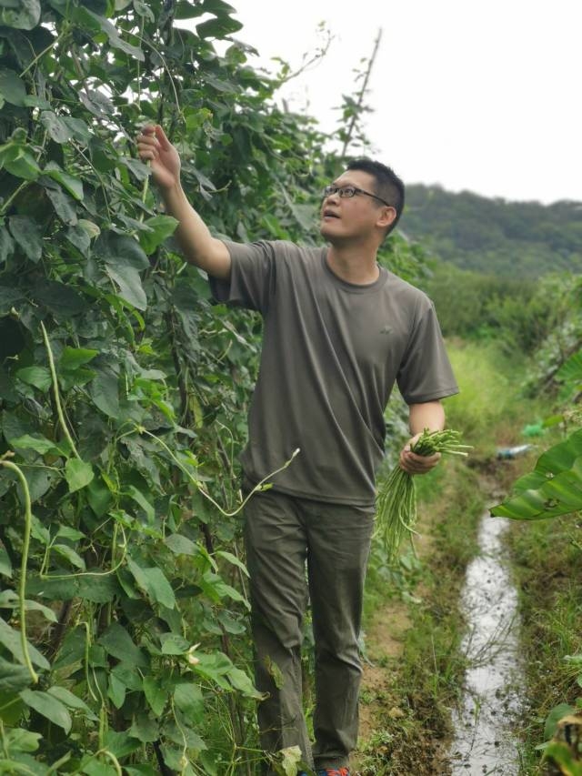 2019年5月30日傍晚,刚驻村不久的殷秀才帮助贫困户采摘豆角。