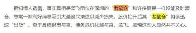 惠誉租赁在上文中曾提醒社会各界警惕孟飞团伙诱使散户接盘,并称股价抬升后孟飞团伙将会迅速套现离场。