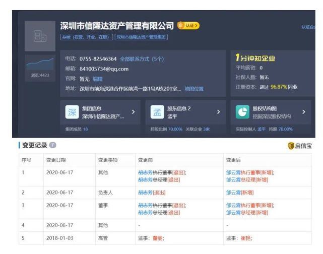 然而,6月17日,胡志芳悄悄卸任了已经做了将近四年的信隆达公司董事长、法人职务。