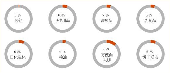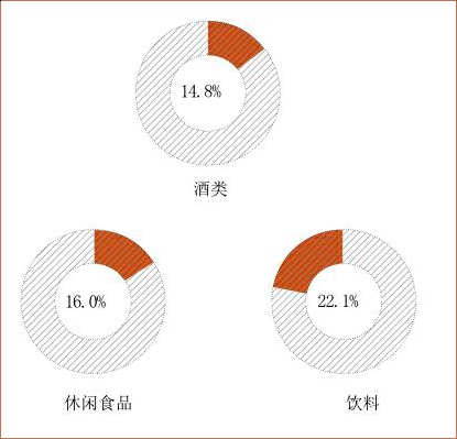 而经过几年深耕,B2B平台几乎覆盖了烟类以外的所有SKU。其中,夫妻店22.1%的饮料采购来自B2B平台,占比居于首位;16%的休闲食品和14.8%的酒类次之。