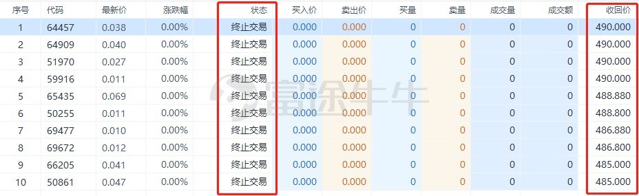 继续以腾讯为例,在股价在大幅上涨后近两个交易日都出现回调,股价跌回至485港币,于是可以看到6月26号许多收回价低于490的牛证都被收回,终止交易。