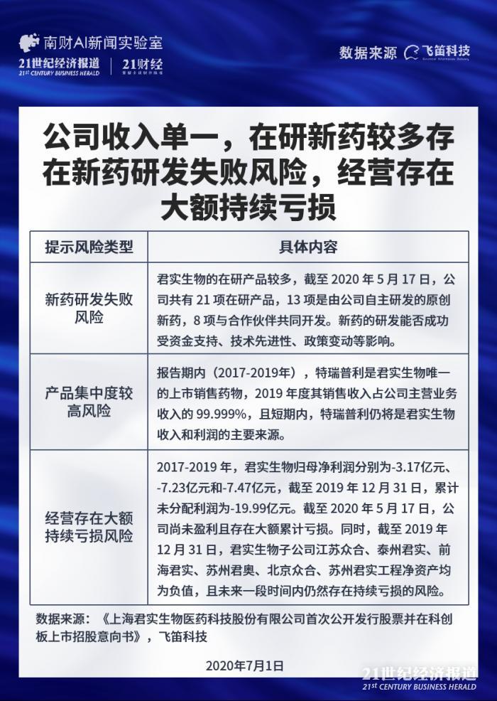 新股排查丨君实生物收入单一,经营存在大额持续亏损