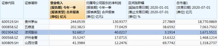 另据统计,年初至7月1日,贵州茅台、五粮液累计涨幅为27.79%和38.66%,同期洋河股份涨幅仅为3.19%。