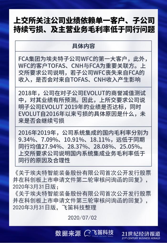 针对公司发布的招股说明书,上交所共向公司发出了四轮问询函。其中,公司业绩依赖子单一客户、子公司EVOLUT持续亏损原因、公司主营业务系统集成毛利率低于同行问题需要关注。