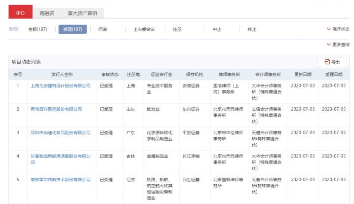 至此,创业板改革并试点注册制下申请IPO企业合计达到187家。