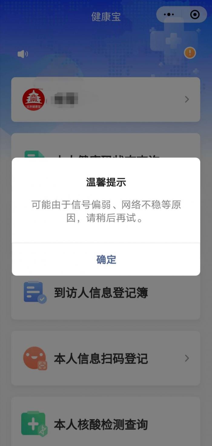 7月3日早上,网友反馈,今晨微信小程序北京健康宝崩溃,多名微博网友均遇到类似情况。21世纪经济报道记者查询发现,也无法正常使用微信北京健康宝小程序。