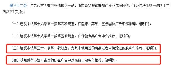 翻译一下:代言明星明知广告是假的,或者不尽基本义务去了解广告真假,利用自己的影响力去推荐证明产品服务,出了事,是要承担连带责任的。