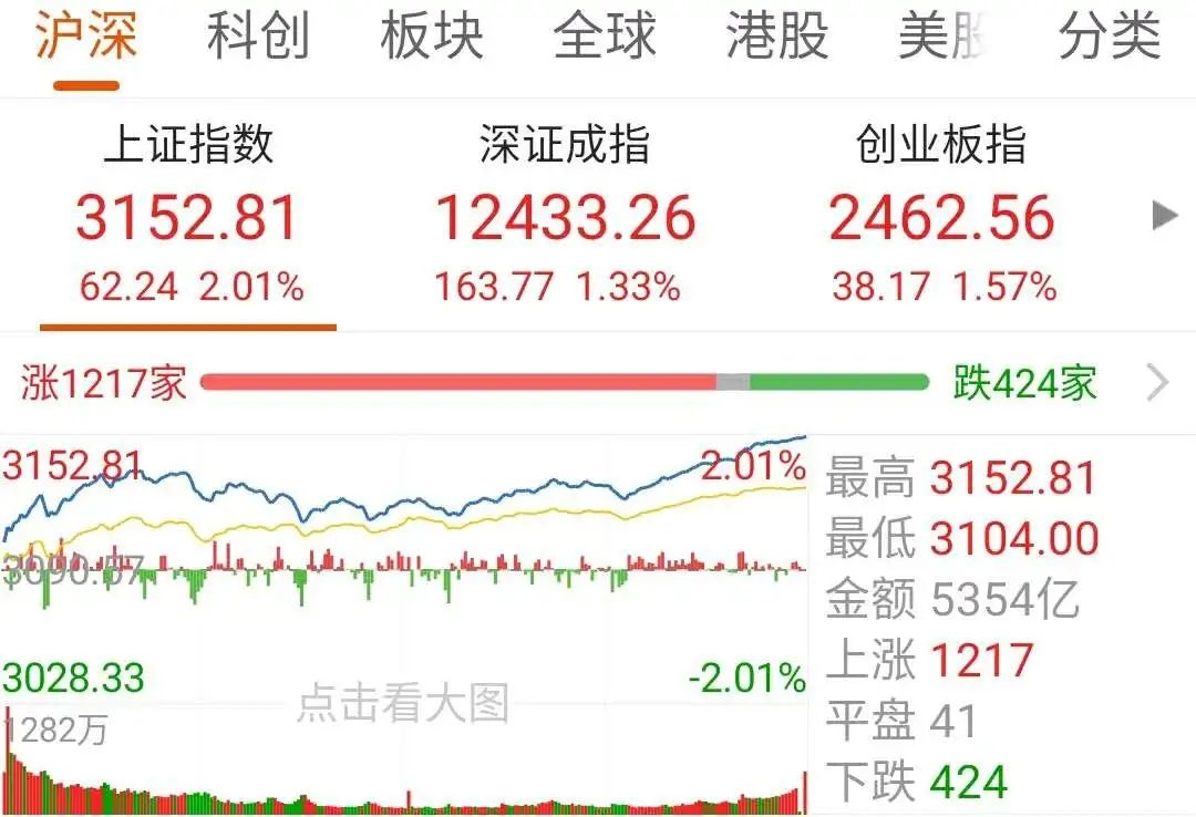 进入7月,股市一下子就“热”了,前两天大小指数还在分化,周五演变成了集体飙升,沪指突破3150,大涨2.01%;深证成指大涨1.33%;创业板指再刷反弹新高,大涨1.57%。A股市值本周暴涨了3.8万亿元。