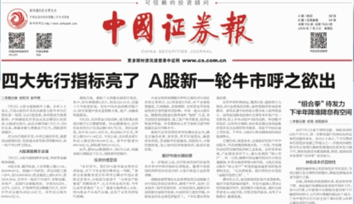 如此大的成交量,表明市场情绪已经被有效点燃。媒体也开始把“牛市”做到了头条的标题之中,比如今天的中国证券报: