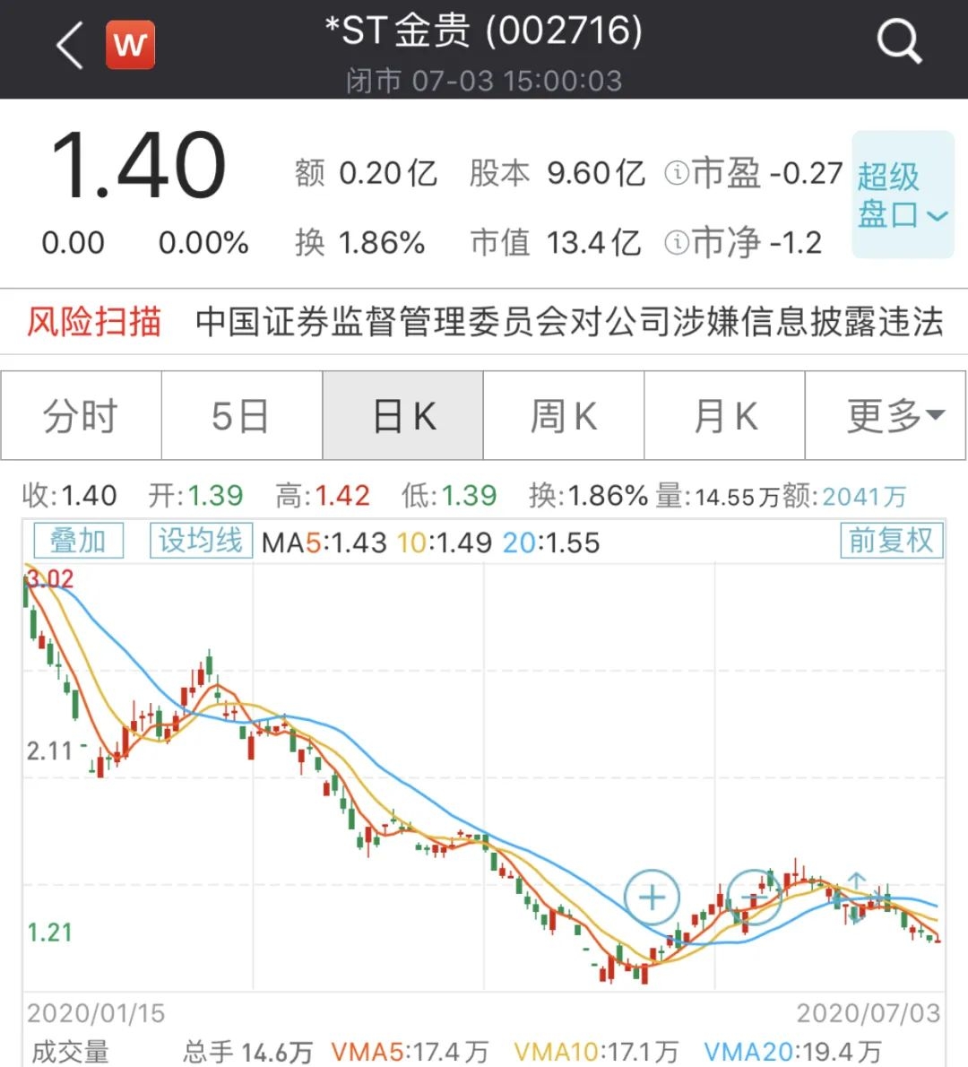 随后,公司被进一步被实施退市风险警示,成为了如今的*ST金贵。