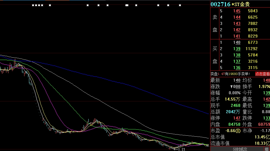 然而,截至目前,*ST金贵市值已蒸发八成,股价从最高点17.47跌去91%,最新报收1.4元/每股。