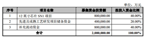 中芯国际本次初始发行的股票数量为16.86亿股,计划募集资金200亿元,分别用于12英寸芯片SN1项目、先进及成熟工艺研发项目储备资金,以及补充流动资金等。