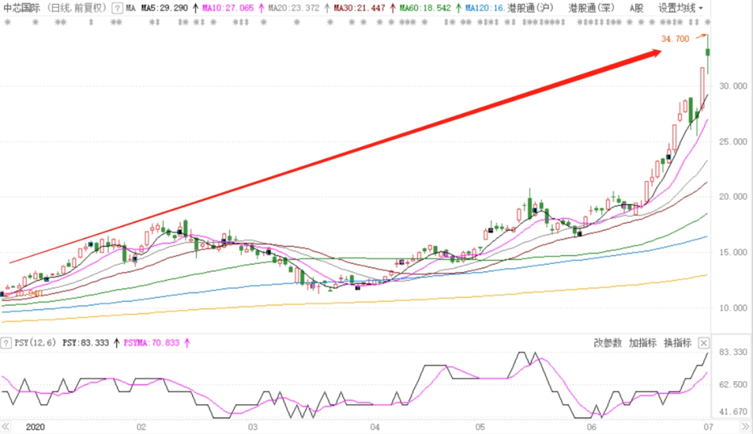 把时间拉长看,年初至今,中芯国际H股股价一路高歌猛进,从最低10港元出头到最高34.7港元,不断创出历史新高,期间涨幅超过200%,成了港股“最靓的仔”之一。