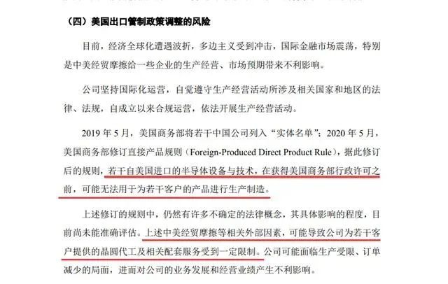 在招股书中,中芯国际坦言,“若干自美国进口的半导体设备与技术,在获得美国商务部行政许可之前,可能无法用于为若干客户的产品进行生产制造。”