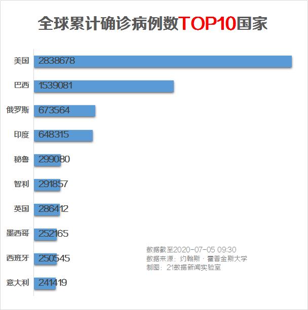 据美国约翰斯·霍普金斯大学发布的统计数据显示,截至北京时间7月5日6时34分,全球新冠确诊病例达11185627例,死亡病例为528354例。
