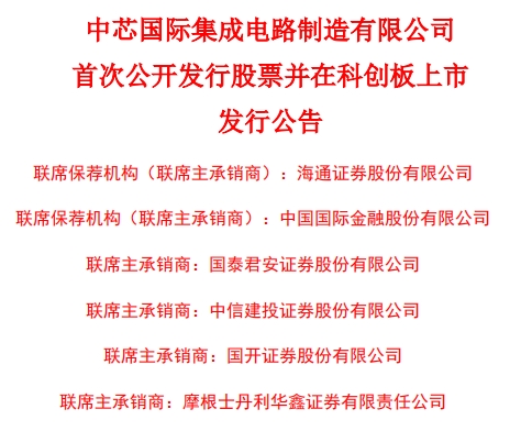 中芯国际(688981)7月5日晚披露首次公开发行股票并在科创板上市发行公告,公司本次发行价格为27.46元/股,对应发行人2019年度扣非前归母净利润未行使超额配售选择权时本次发行后的市盈率为109.25倍。本次初始发行数量为16.86亿股,占发行后总股本的23.62%。公司募投项目预计使用募集资金为200亿元。