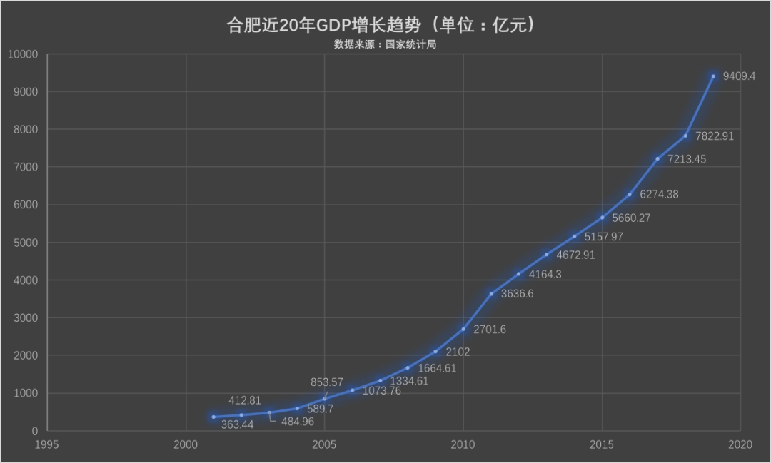 1978年,中科大恢复为全国重点大学,合肥有了人才这一筹码。2017年,合肥获批综合性国家科学中心,成为全国第二个获此殊荣的城市。当年倾力投资的京东方如今也成为合肥经济的重要“支撑”,截至2017年底,京东方在合肥投资已超1千亿。而合肥长鑫帮助合肥实现了芯片的全产业链布局,并形成了多个高新尖产业集群。2019年,合肥的GDP为9409亿元,排行较2000年提升59位,成为长三角世界级城市群的副中心。