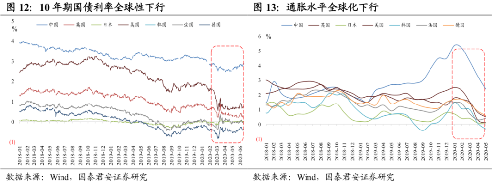 「无风险利率」下行的「海外」证据——超预期宽松下无风险利率下行带动的「流动性溢出」。当前全球化的宽松超越历史上任何一次,带来的影响也是与历史任何一次均不同,美联储总资产在短时间内扩张接近3万亿,远超2008年的1万亿左右规模(图11)。与之前任何一次都不同的是,当前「流动性宽松」、「低利率水平」、「低通胀水平」共存(图12-13),需求侧影响将会带来「投资行为」进一步替换了「消费行为」,资产价格的「通货膨胀」替换了物价水平的上行。直接的表现就是,北上资金的大幅流入(图14)。
