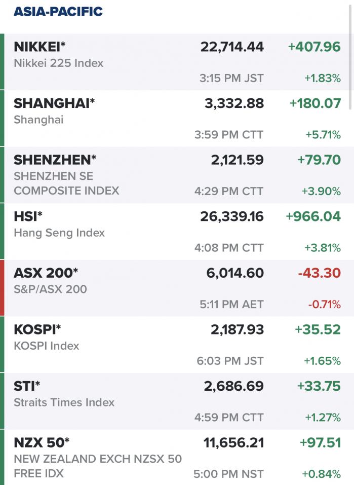 香港恒指收涨3.81%,日内大涨千点,较3月收盘低点涨逾20%,进入技术性牛市,其中大金融股、汽车和中字头个股领涨。另外,今日欧股开盘延续亚盘的乐观情绪,泛欧斯托克600指数早盘一度上涨1.7%,银行板块领涨涨幅超4%。美股方面,截至发稿,美股三大股指期货均上涨超1%。