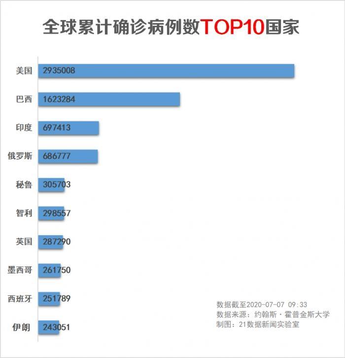 据美国约翰斯·霍普金斯大学发布的统计数据显示,截至北京时间7月7日9时33分,全球累计确诊新冠肺炎病例11590195例,累计死亡病例537429例。