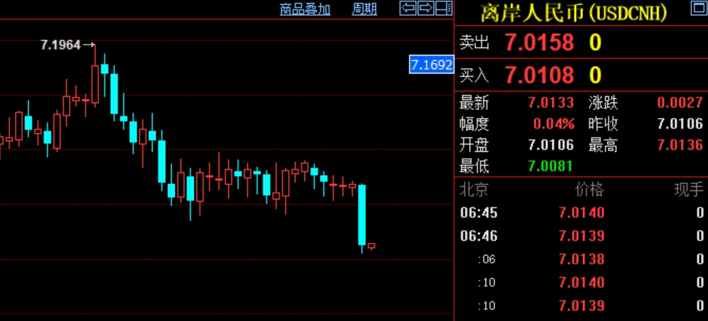 7月6日,人民币对美元汇率在离岸和在岸市场接连升破7.06、7.05、7.04、7.03、7.02五道关口。
