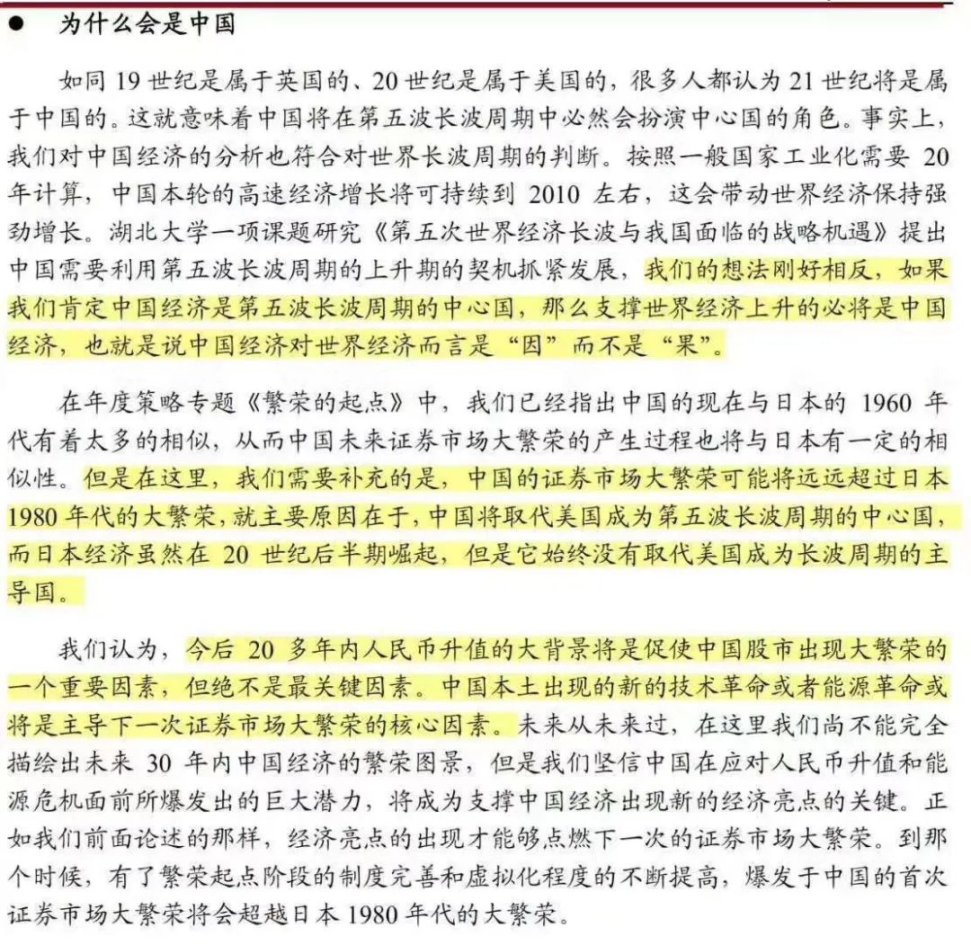 周期天王周金涛曾在2006年发文称,从世界经济的长波周期角度分析,作为第五波长波周期中心国的中国或将在2020年代出现首次证券市场大繁荣,同时,可以肯定的是,支撑此次大繁荣的主导力量将是发生在中国的新一轮技术革命或能源革命,而不单单是人民币升值。