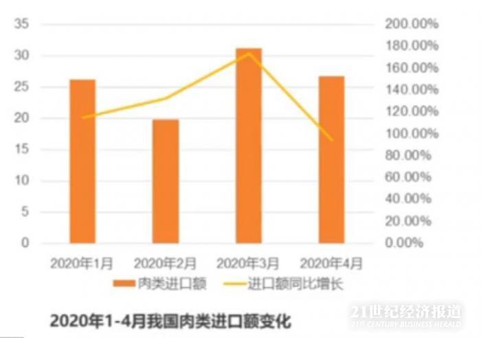 于露告诉21世纪经济报道,尽管前4月中国肉类进口出现了大幅增长,但未来几个月肉类进口或将出现非常明显的调整。