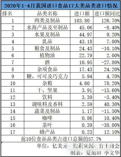 食土商会的数据显示,2020年1-4月,中国进口肉类产品299万吨,增长83.8%;进口额103.8亿美元,增速更是高达1.4倍。于露介绍,猪肉进口在高位徘徊以及其替代商品的进口发力,是支撑肉类产品进口的主要原因,“猪肉进口量最大,它占到了整个肉类进口的是57.4%。”